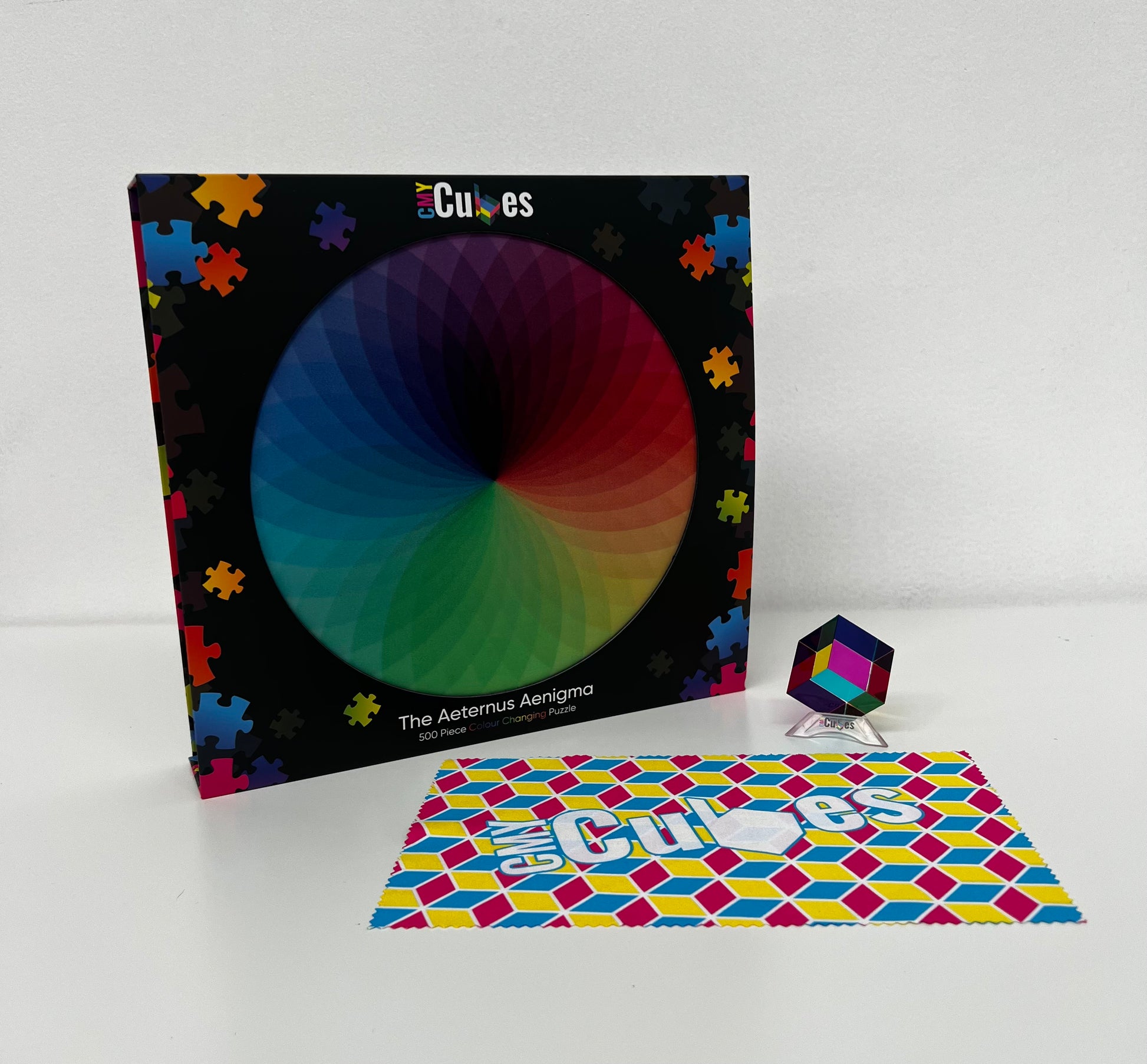 Featuring the elusive Aeternus Aenigma 500 piece Puzzle, our classic Original Cube (you can choose the size), a sleek Cube Stand, and the essential CMY Klean, this bundle is built for those who crave exploration with a sensory twist.